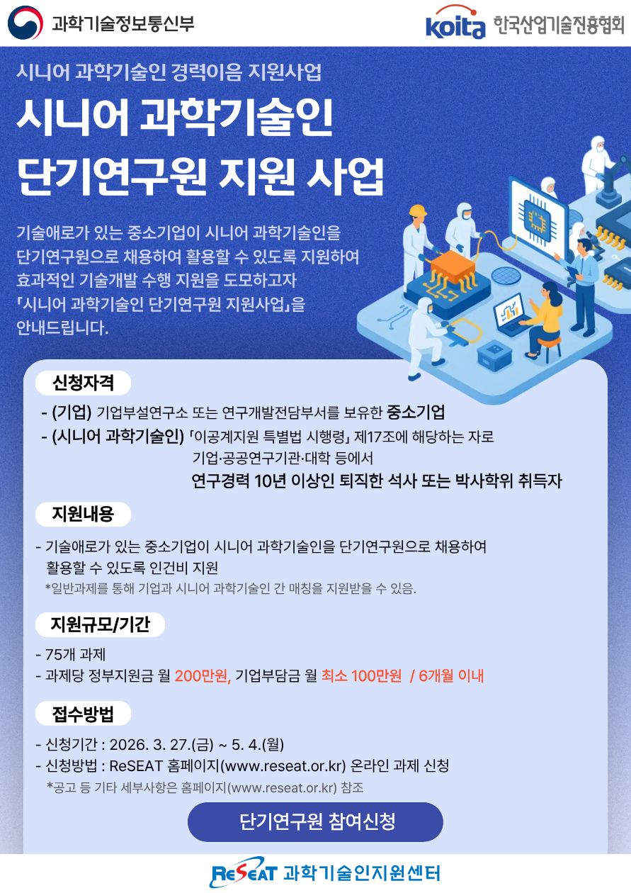 2026년 시니어 과학기술인 단기연구원 지원사업 FAQ